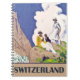 Suiça, caderno espiral. As pessoas apreciam a visão sobre as montanhas durante a estação de verão, com o céu azul atrás. poster de viagens vintage no cobrir notebook