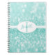 Anote notas importantes e lembretes com um notebook Teal Glitter Personalize. O design do notebook apresenta um fundo brilhante e um banner oval que você pode personalizar com seu nome e monograma. Itens de presentes adicionais disponíveis com este design também. Entre em contato comigo diretamente se precisar de assistência para personalização.