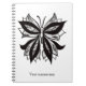 notebook de borboleta abstrato com desenho de tinta retratando esse inseto lindo com asas estranhas sombreadas em preto, branco e pontos. Esta bela criatura é desenhada em um estilo semelhante a tatuagens.Este caderno de estilo gótico tem texto personalizável.