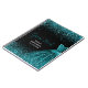 A beautiful teal blue themed elegant watercolor dress gown on a black background with faux glitter at the top and bottom of the guest book.