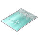 Personalize facilmente este design de notebook chic moderno com brilho bonito cintilante prateado em um fundo metálico escovado teal.