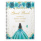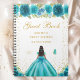 Este elegante e glamouroso e doce livro de convidados apresenta uma bela princesa com cabelo escuro e pele escura em um vestido azul teal. O texto combina o script manuscrito e as fontes sans serif modernas para um aspecto elegante e sofisticado. Os arranjos florais, borboletas e confete de ouro criam a mistura perfeita de rústicos e quicos. Gráficos por www.etsy.com/uk/shop/SunflowerDayLove