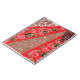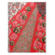 Caderno Espiral Tecido vermelho vibrante com intrincado floral e