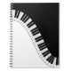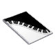 Um teclado de piano preto e branco em curvatura divide o preto do branco neste design gráfico caprichoso que certamente encantará o músico.