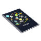 Notebook personalizado com um padrão bonito e colorido com todos os tipos de elementos temáticos do espaço externo. Imagens incluem astronautas flutuando em seus trajes espaciais brancos. Estrelas e planetas e pequenos navios de foguetes legal, naves espaciais e satélites. Diversão e design maluco.