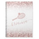 design de notebook cor-de-rosa bonito e monograma, com uma borda brilhante rosa de ouro moderna e moderna, e personalização do nome de script feminino feminino feminino.