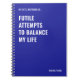 Notebook engraçado para contabilistas, contabilistas, analistas de dados, auditores e outros profissionais de contabilidade ou de finanças. Personalize o nome a ser impresso na parte inferior do cobrir "Futile Attempts to Balance My Life" (Tentativas Fúteis de Equilibrar minha vida). Os notebooks personalizados são perfeitos para aniversários de trabalho, feriados, trocas de presentes no escritório e muito mais!