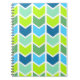 Caderno Espiral Teste padrão geométrico verde e azul moderno de