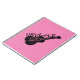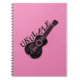 Desenho preto com texto personalizado. Notebook ukulele personalizado com fundo rosa. Design original. Ideia de presente para amantes de ukulele.