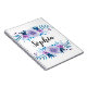 Caderno com design floral romântico da grinalda da aguarela azul & roxa e nome customizável ou monograma.