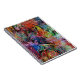 Cores vibrantes e padrões intrincados se misturam, criando uma cena de abstrato cheio de formas giratórias e motivos florais. A interação de tons quentes e legal, junto com camadas texturizadas, adiciona profundidade e movimento.