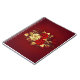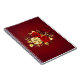 The composition of two artistically painted red roses and one golden rose, decorated with gold, jewel leaves on textured background.