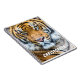Notebook com uma face próxima do rosto do tigre, onde o tigre está olhando diretamente para você e suas marcas laranja e listradas pretas são mostradas em vibrações e detalhes no excelente. Personalize facilmente com um nome para uma escola divertida ou acessório de escritório para amantes de animais e da vida selvagem.