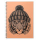 Características deste design um tigre pronto do inverno bonito que veste um boné da malha e uns eyeglasses redondos.