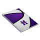 Este caderno espiral de basquete esportivo apresenta a imagem de uma bola de basquete realística, abstratamente sobredimensionada, com painéis coloridos roxos e brancos alternados - nome e monograma do atleta, letra varsity ou número de camisa são personalizáveis no cobrir frontal - por katz_d_zynes