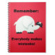 Elefante com fita amarrada na tromba e mensagem humorística: "Lembre-se: Todos cometem eros" (erro de ortografia intencional).