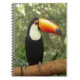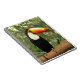 Em uma floresta tropical exuberante, um tucano vibrante percorre graciosamente um galho coberto de musgo, seu bico impressionante e superdimensionado contrastando brilhantemente com a folhagem verdiana. A plumagem iridescente do pássaro e o olhar intenso fazem uma imagem cativante, mostrando a beleza e o fascínio exótico.