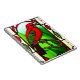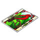 Vívido trabalho de arte de vidro colorido com uma ave no meio de um cenário inspirado na natureza, mostrando cores vibrantes e padrões intrincados.