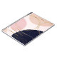 Este moderno padrão geométrico contemporâneo, apresenta uma coleção de várias bolhas circulares de vários tamanhos molda tinta aquosa, traçados geométricos minimalistas elegantes e trabalho de arte de pontos confetti, sobre uma tinta pincelada rosa, fundo de mármore rosa e branco. Uma arte original na moda, luxuosa e fascinável, glam design, que ajustado perfeitamente para qualquer ocasião, visto cotidiano ou decoração doméstica. Arte criativa, minimalista, Impressão de imagem.