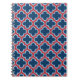 Caderno Espiral Trellis, Latice, Quatrefoil, azul e vermelho marro