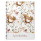 Este caderno de tendências apresenta um padrão bonito, no outono, de terracota neutro e pincelado, flores silvestres cor-de-rosa e folhas verdes com borboletas sobre fundo branco. Personalize com seu nome ou monograma em uma cor rosa rosa correspondente.