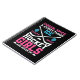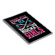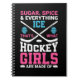 O caderno temático do hóquei para a garota de hóquei com patas, paus e capacetes com texto rosa, branco e azul que lê Açúcar, Especiarias e Todo Gelo É do que as garotas de Hockey São Feitas!