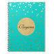 Caderno Espiral Turquesa Azul e Dourado Confetes Pontos Brilhantes