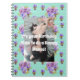 Caderno Espiral Tuxedo Cat Funny Cute Floral Aqua Stripe Notebook