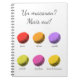 Imagem gráfica animada e colorida de macarões franceses com texto em francês. Um delicioso guardião de suas anotações!