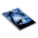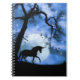 caderno de Unicórnio e lua. Excelente azul nesta imagem muito legal. Um carvalho enquadra o unicórnio com pássaros passando. Uma maneira divertida de voltar para a escola!