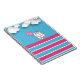 Esta design mostra um unicórnio feliz segurando um grande pirulito, voando sob nuvens brancas com um fundo colorido