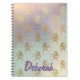 Um bonito tema de unicórnio branco, este notebook apresenta um bonito fundo azul e roxo com um padrão de unicórnio ouro. No centro inferior do seu notebook está seu nome personalizado em fontes roxas e cursivas. Personalize o seu hoje! Design: https://www.etsy.com/shop/OriginsDigitalCurio