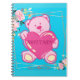 Caderno Espiral Ursas Meninas Florais Azul Rosa Moderno Volta às A