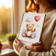 Documente memórias familiares preciosas neste caderno espiral de ursinho de aguarela doce. O design apresenta um urso encantador pintado à mão segurando um balão vermelho em forma de coração contra um fundo de nuvens pastéis suaves. Este diário é um presente perfeito para uma mãe ou nova mãe usar para notas diárias, planejamento ou como um precioso souvenir.