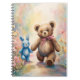 Caderno Espiral Urso de pelúcia e Coelho em um Jardim Pastel