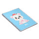 Caderno do urso polar fofo e flocos de neve no azul Columbia. O nome Oti pode ser personalizado.