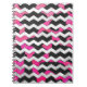 Caderno Espiral Vaca Chevron, rosa quente e Impressão preto