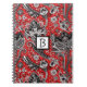Caderno Espiral Vermelho Preto & Branco Floral Paisley Boêmio Boho