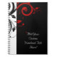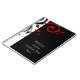 Fundo preto com software de design de espiral reversa branco e vermelho. Excelente como lembrança de casamento, ou um favor para a festa de casamento, pais ou convidados especiais. Fundo negro com as modernas vinhas brancas e espirais em um tema contemporâneo de na moda. Todos os Designs Copyright © www.CustomInvitesOnline.com.
