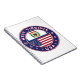 Crachá da Virgínia Ocidental com bandeira da Virgínia Ocidental e bandeira dos EUA cores, forma arredondada. Emblema da Virgínia Ocidental,