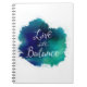 Este notebook tem um design de excelente para múltiplos propósitos! Ele apresenta um design de abertura de cor de água em azul e verde. No topo da intermitência de cor de água estão as palavras "Live with Balance" (Vivo com equilíbrio) em uma fonte branca com script impressionante. Isso seria excelente como um diário, um diário de gratidão, presente ou notebook multiuso!