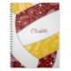 Esse bonito notebook temático de vôlei apresenta a imagem realista de um vôlei de tamanho abstrato, que tem marrom, ouro e painéis brancos com delicadas flores de rabo desenhadas à mão, penas e paisagens em branco, padronizado nos painéis de marrom e ouro - personalizados com o nome do atleta - de katz_d_zynes