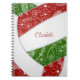 Esse bonito notebook temático de vôlei apresenta a imagem realista de um vôlei de tamanho abstrato que tem painéis vermelhos, verdes e brancos com delicadas flores de rabo desenhadas à mão, penas e paisagens em branco, padronizado nos painéis vermelho e verde do vôlei - personalizados com o nome do atleta - por katz_d_zynes