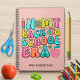 De volta à escola retro caderno espiral do professor. Um presente brilhante e colorido de professor de tipografia rosa.