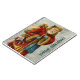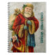 O Natal deseja em verde. Uma imagem vintage do clássico Pai Natal vestindo seu casaco vermelho quente e carregando um cheio de brinquedos. Este velho Pai Natal também conhecido como velho Santo, Nick, é fino e tem uma bengala para viajar pela terra dando brinquedos a todas as meninas e meninos. O fundo é um velho e desbotado pergaminho parisiense de propaganda com um olhar desfeito e metido sobre ele.