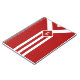 O padrão geométrico do na moda apresenta faixas brancas em negrito sobre fundo vermelho. Três chevrons brancos e vermelhos alternados terminam num diamante vermelho esboçado com branco. Parece uma medalha estilizada pendurada numa fita. O diamante contém um monograma personalizável. Três listras brancas estendem-se do lado oposto do diamante até a borda do design. Os terços externos do padrão são vermelhos. Imagem criada digitalmente. Copyright © 2014 Claire E. Skinner. Todos os direitos reservados.