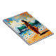 An oceanic themed notebook. A beautiful ai illustration done in an oil painting impasto style. A woman walking on the beach with an abstract mosaic vibrant colorful style.
