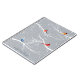 Linda cena de inverno com galhos brancos, pássaros coloridos e neve caindo. Lindo cenário de inverno com pássaros em amarelo, laranja, azul e vermelho. Personalize alterando o texto.
