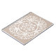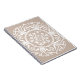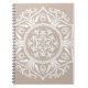 Esta mandala branca senta-se sobre um fundo castanho-claro ou castanho-claro. A cor é macia e natural. Em algumas luzes pode parecer uma cinza quente. Parte da Coleção Rosenn Mandala.