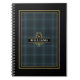 Adicione estilo ao seu escritório em casa ou ao ambiente corporativo com este caderno espiral personalizável que apresenta um sofisticado padrão xadrez tipo vidro da janela, um elegante emblema preto e dourado e um monograma elegante. Adicione um nome e inicial para criar um presente único. Seja presenteando executivos, colegas de trabalho ou estudantes universitários, este caderno certamente irá impressionar. Criado para homens e mulheres que valorizam o design clássico e acessórios de escritório refinados.